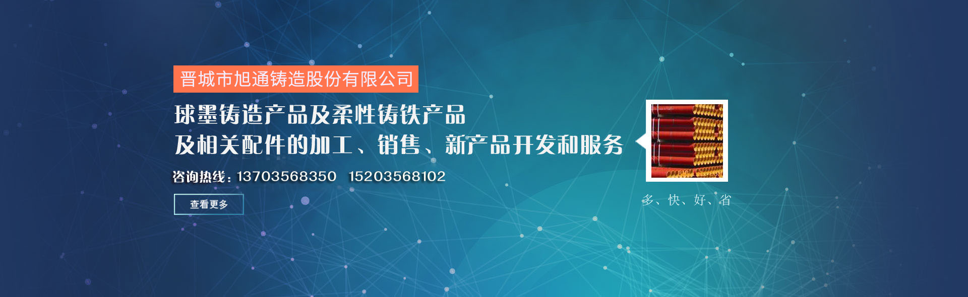晉城市旭通鑄造股份有限公司是一家致力于球墨鑄造產(chǎn)品及柔性鑄鐵產(chǎn)品及相關(guān)配件的加工、銷售、新產(chǎn)品開(kāi)發(fā)和服務(wù)的網(wǎng)絡(luò)平臺(tái),以“多、快、好、省”為服務(wù)宗旨,多種選擇、快速定位、優(yōu)質(zhì)產(chǎn)品、省錢省力,為客戶提供精準(zhǔn)服務(wù)......
